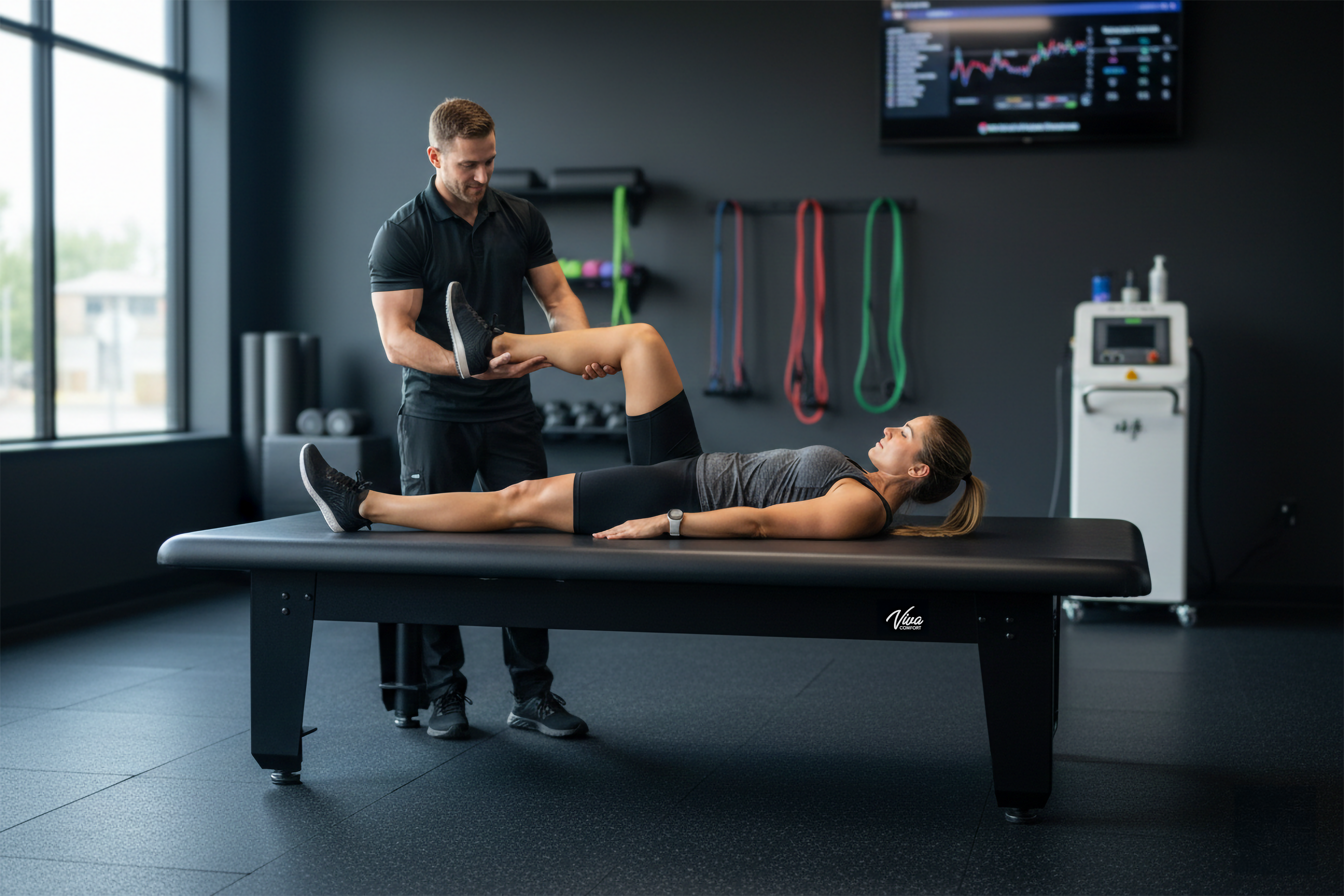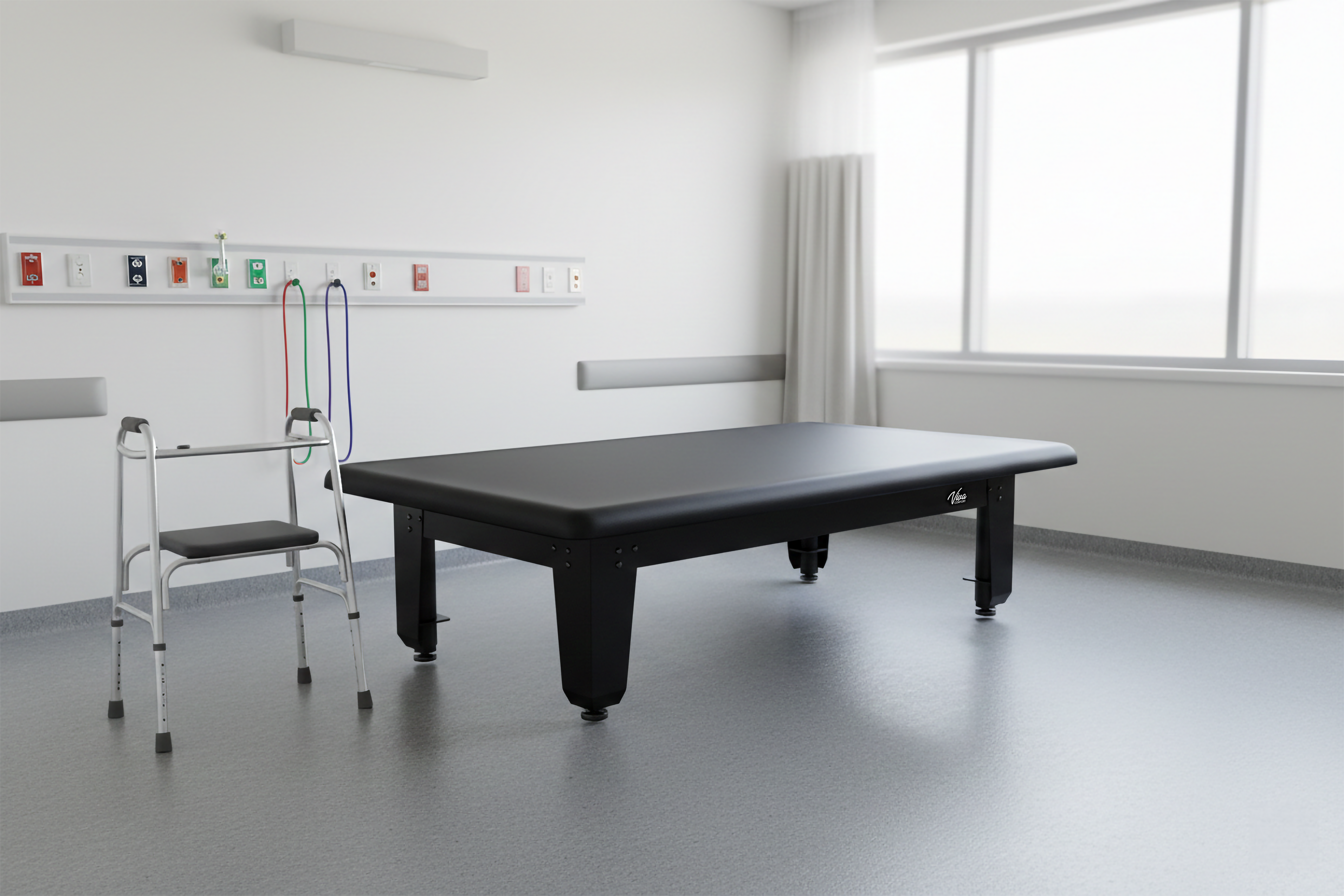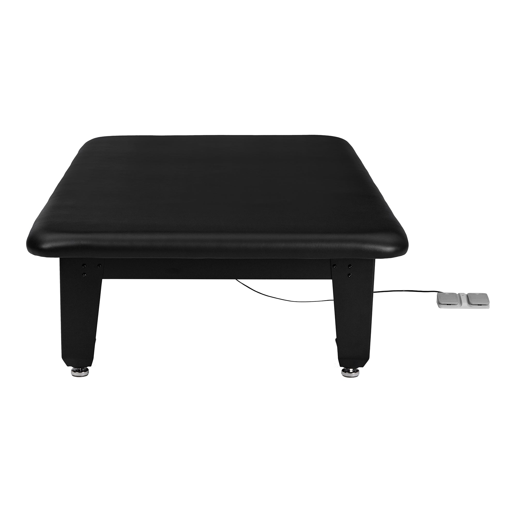 Safety and durability serve as the core of the TheraLift design, which features a reinforced frame capable of supporting an astonishing 1,500 lbs. capacity. The table is driven by four independent electric actuators for precision control and is anchored by durable, powder-coated black legs that provide an industrial-strength foundation. For maximum hygiene and patient comfort, the surface is wrapped in premium, moisture-resistant black PVC upholstery with seamless rounded safety corners. These high-performance specifications make TheraLift an essential asset across the continuum of care. In Bariatric Centers and Inpatient Hospitals, it ensures maximum security and lift compatibility; in Pediatrics and Special Education, its low-profile surface allows for effective side-by-side therapy; and in Sports Medicine, its rugged construction easily handles the intensive recovery demands of professional athletes.
