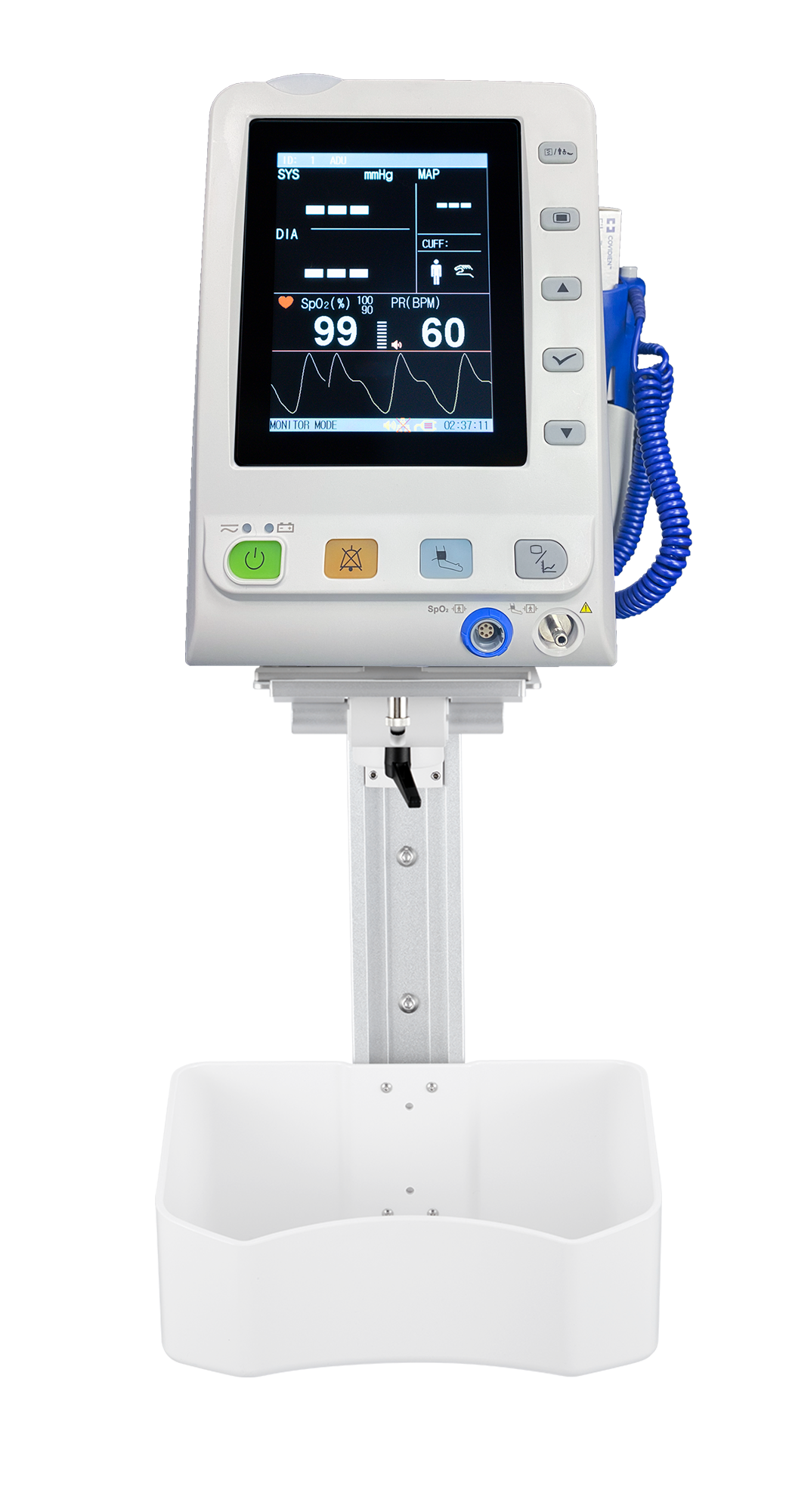 All brackets are precisely model matched for a proper fit and feature a plastic accessory basket to keep frequently used components, such as cuffs and probes, within immediate reach. We offer specialized brackets compatible with major product lines, including Welch Allyn, Edan Monitor (M, iM, and X-series), Edan M3s, and the Omni Spot unit. Upgrade your workflow today and keep critical components organized, accessible, and ready when you need them most.