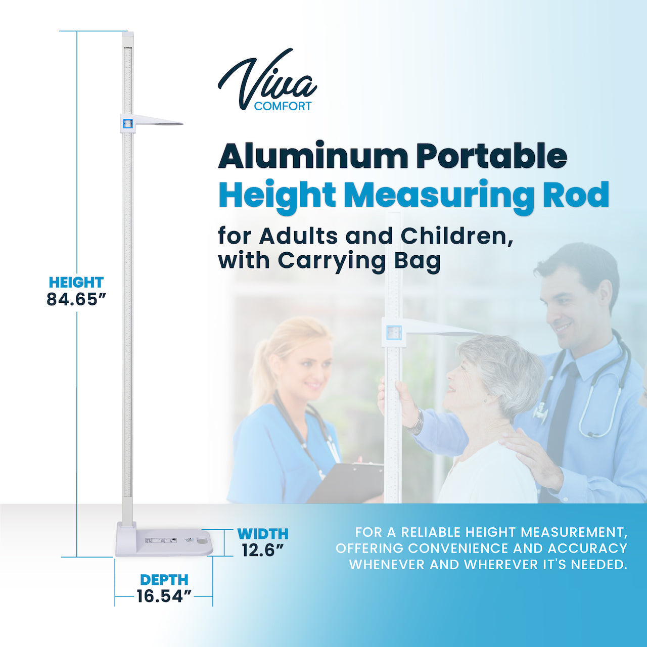 Obtain precise measurements of an individual’s height with the Aluminum Portable Height Measuring Rod. It’s a versatile, reliable, and transportable tool designed to accurately measure the heights of adults and children. It is comprised of high-quality aluminum, ensuring it’s lightweight and durable for transportation. Its portable design makes it perfect for various settings, whether you’re a healthcare professional needing a convenient tool for patient assessments, a parent monitoring their child’s growth at home, or a fitness enthusiast tracking progress. The rod features clear, easy-to-read markings, allowing for quick and accurate height measurements up to significant heights. Its adjustable design ensures flexibility, accommodating individuals of varying heights effortlessly. The inclusion of a convenient carrying bag adds to its portability, making it convenient to disassemble, stow, and go. Whether traveling between clinics, conducting home visits, or simply needing to store it away in a closet, the carrying bag is an ideal accessory. With its combination of durability, precision, and portability, the Aluminum Portable Height Measuring Rod is an essential tool for anyone needing reliable height measurements, offering convenience and accuracy whenever and wherever it’s needed.