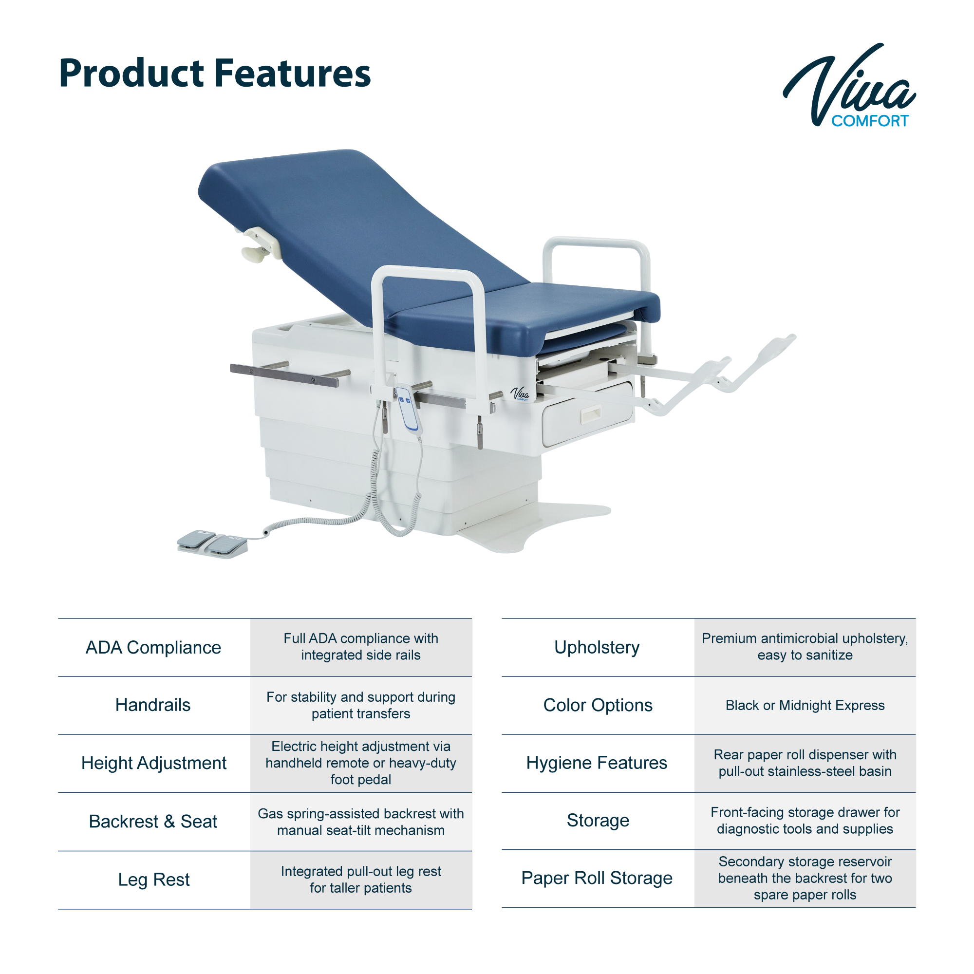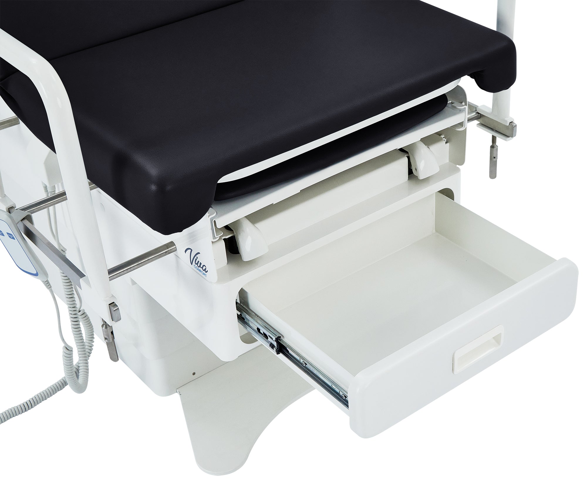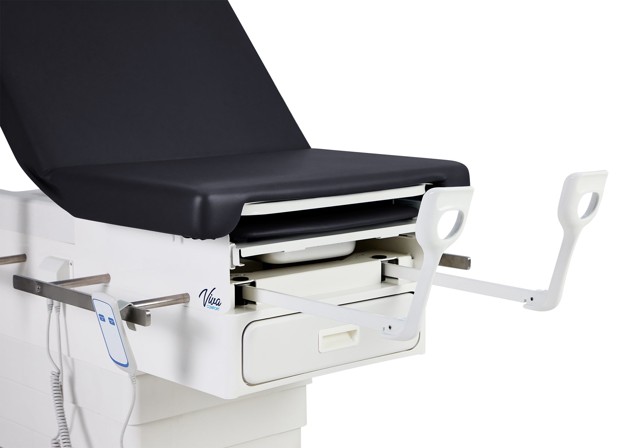 Beyond its core functionality, the Pointe Power Exam Table is thoughtfully equipped with advanced, integrated stirrups designed to prioritize patient comfort and practitioner precision during gynecological and specialized examinations. Complementing this focus on clinical utility, a front-facing storage drawer keeps essential diagnostic tools within arm’s reach, while a secondary storage bay tucked beneath the backrest houses two spare paper rolls to ensure you are never caught unprepared. Hygiene remains paramount; this physician exam table is upholstered in premium antimicrobial fabric that is as durable as it is easy to sanitize. Integrated features like the accessible rear paper roll dispenser and the pull-out stainless steel basin allow for rapid room turnover, maintaining a sterile environment without sacrificing time. Available in a tailored palette of Black or Midnight Express, the Pointe Power Exam Table is more than an investment; it is a bold statement of commitment to quality, inclusivity, and the future of healthcare.