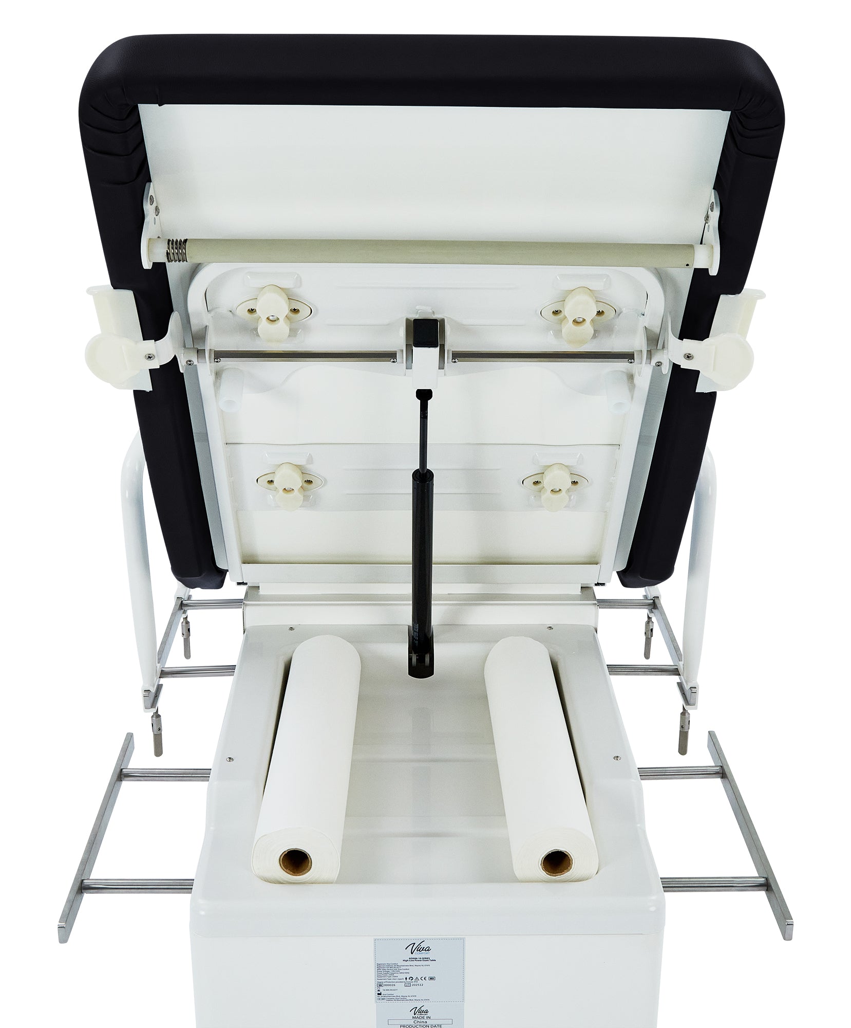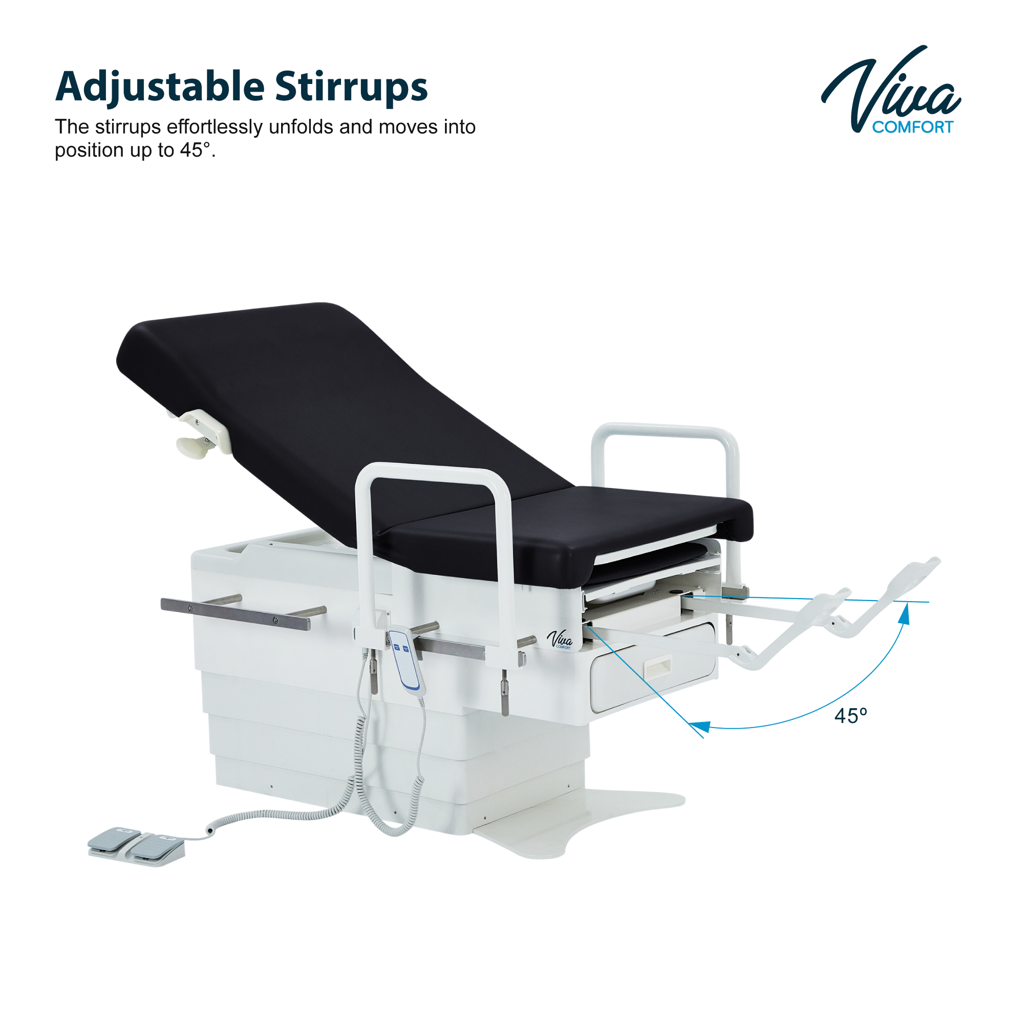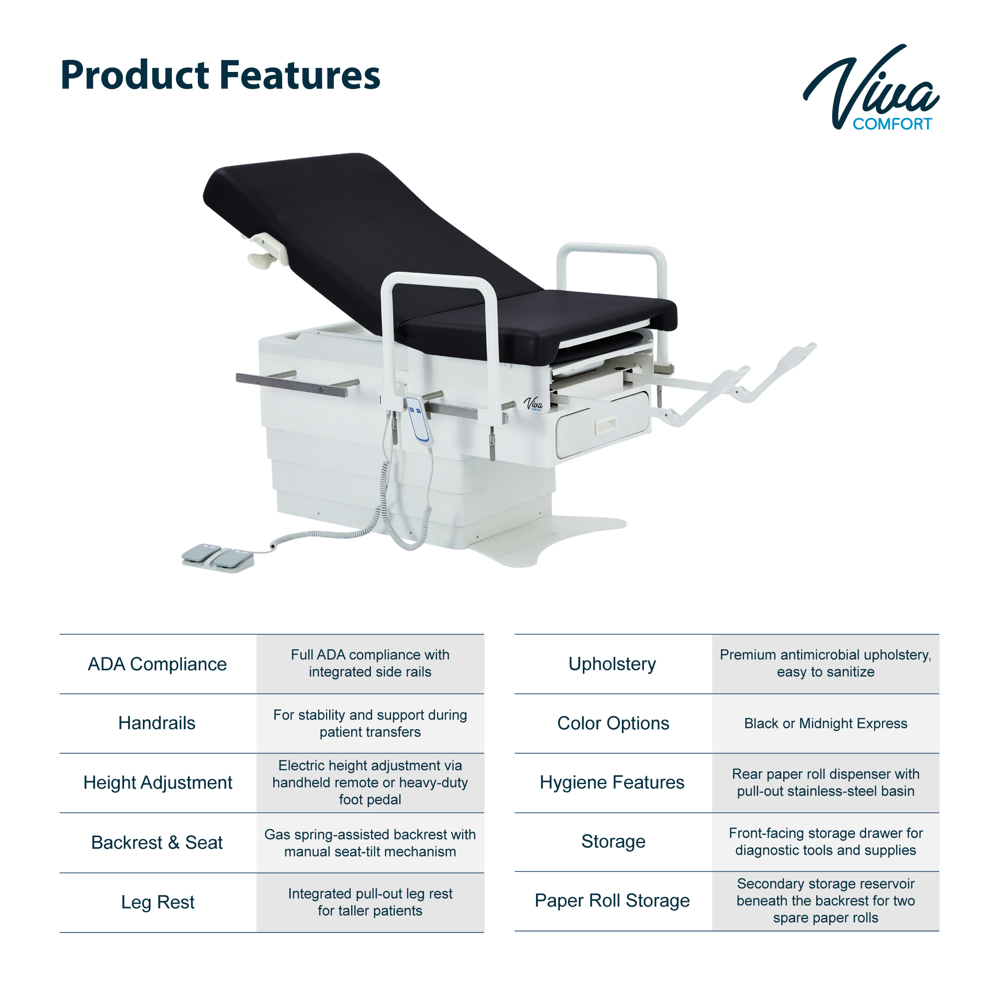 Beyond its core functionality, the Pointe Power Exam Table is thoughtfully equipped with advanced, integrated stirrups designed to prioritize patient comfort and practitioner precision during gynecological and specialized examinations. Complementing this focus on clinical utility, a front-facing storage drawer keeps essential diagnostic tools within arm’s reach, while a secondary storage bay tucked beneath the backrest houses two spare paper rolls to ensure you are never caught unprepared. Hygiene remains paramount; this physician exam table is upholstered in premium antimicrobial fabric that is as durable as it is easy to sanitize. Integrated features like the accessible rear paper roll dispenser and the pull-out stainless steel basin allow for rapid room turnover, maintaining a sterile environment without sacrificing time. Available in a tailored palette of Black or Midnight Express, the Pointe Power Exam Table is more than an investment; it is a bold statement of commitment to quality, inclusivity, and the future of healthcare.