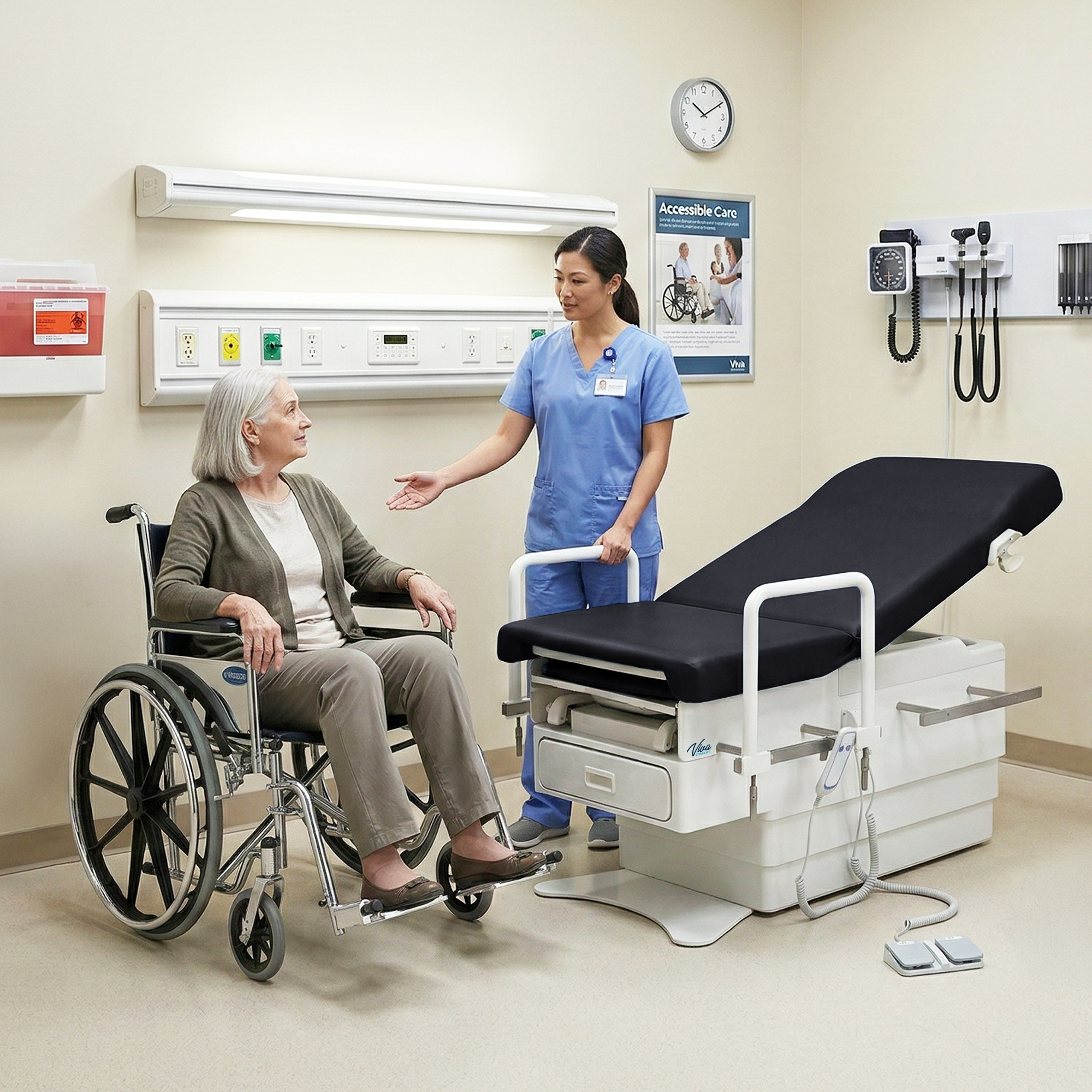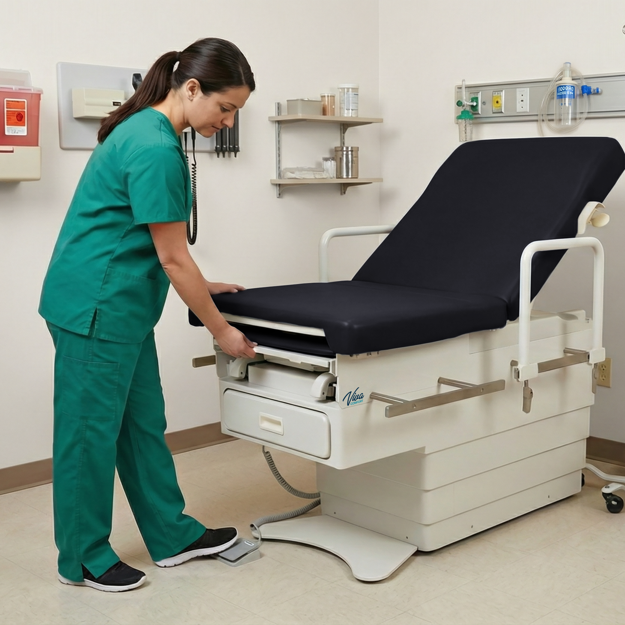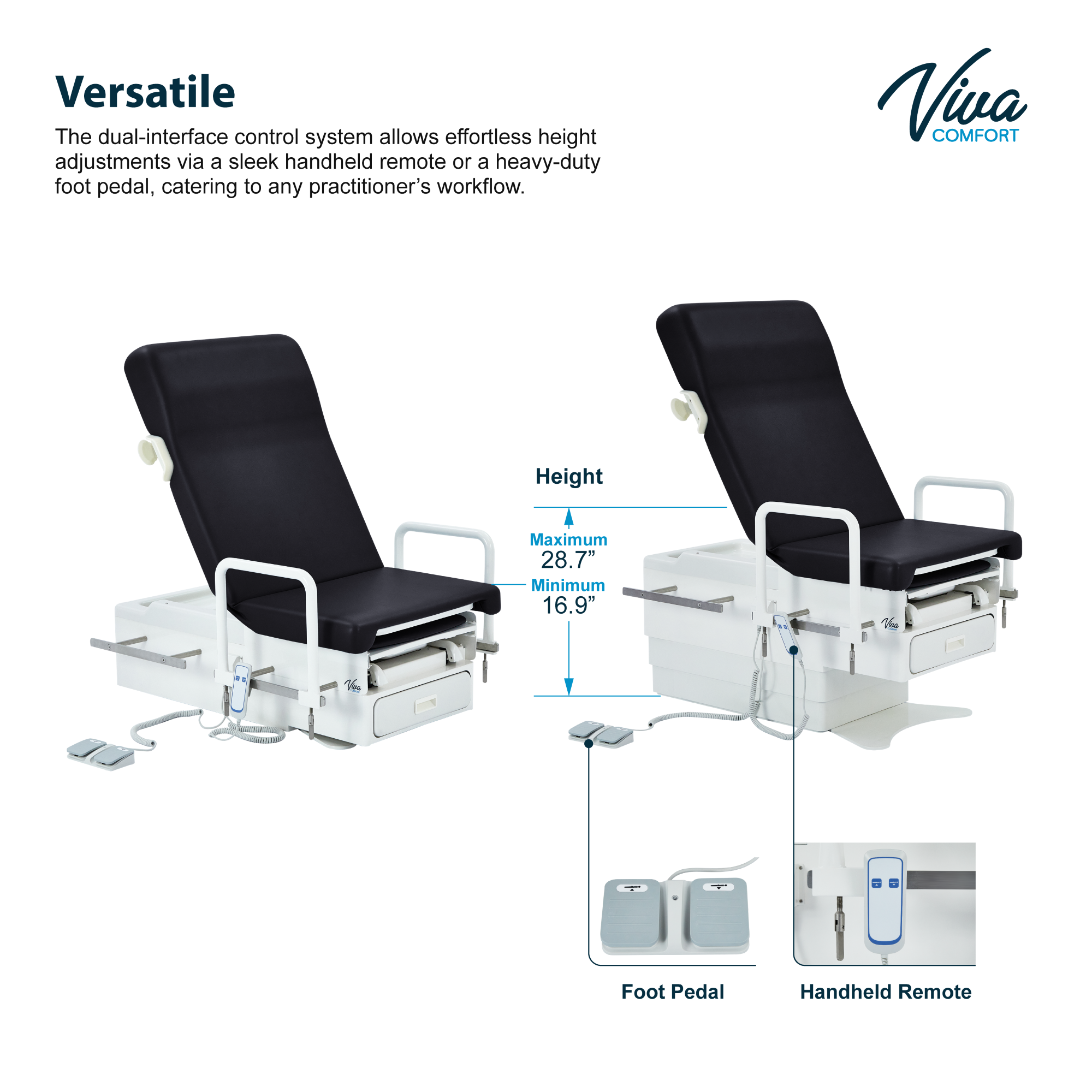 The Pointe ADA-Compliant Power Exam Table redefines the medical examination table experience by seamlessly blending clinical functionality with an elevated aesthetic, making it the premier choice for discerning medical professionals. Every inch of this medical exam table is ergonomically engineered to prioritize patient dignity and practitioner efficiency. It features a sophisticated dual-control system for electric height adjustment, allowing for fluid transitions via either a sleek handheld remote or a heavy-duty foot pedal. This operational brilliance is complemented by a gas spring-controlled backrest and manual seat adjustments, providing medical personnel with the tactile precision needed to customize positioning for complex procedure table requirements and specialized patient needs.